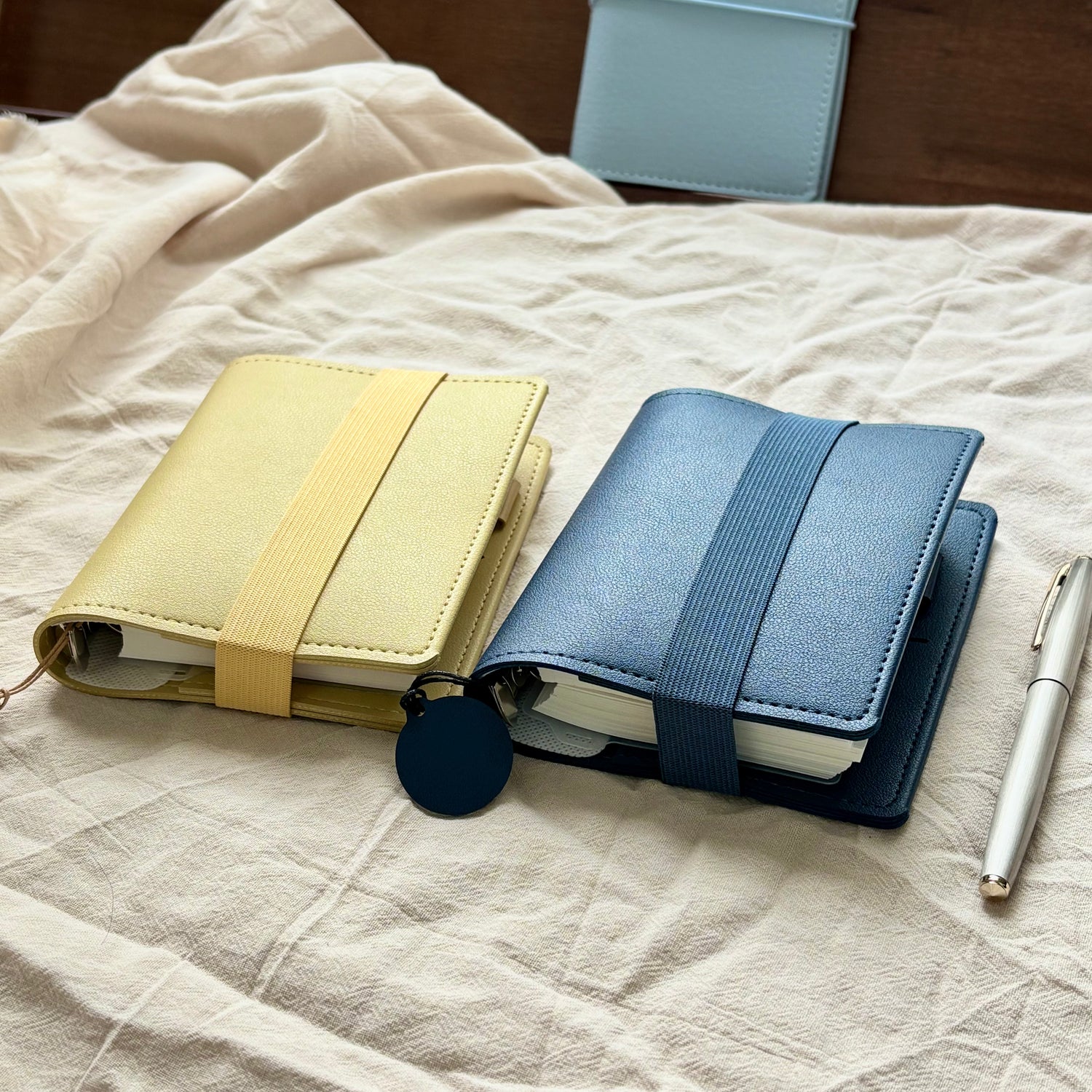 Made from smooth faux leather, the cover is soft yet structured. The included wide-band divider makes it easy to switch between slim and full layouts, ideal for journaling, planning, or travel notes. Built-in front and back pockets keep essentials neatly stored.