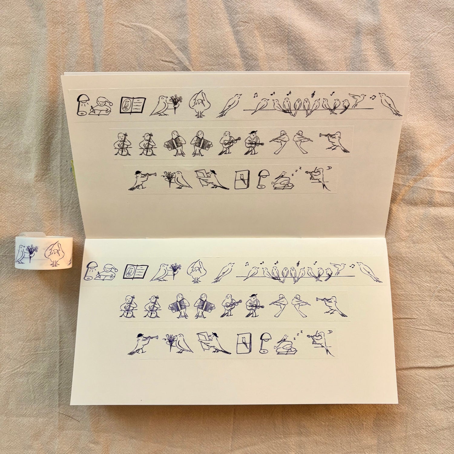 Add a musical twist to your journaling with this adorable washi tape set featuring a hand-drawn bird band! Each bird is playing a different instrument โ from flutes and guitars to drums โ bringing joy and energy to your pages.